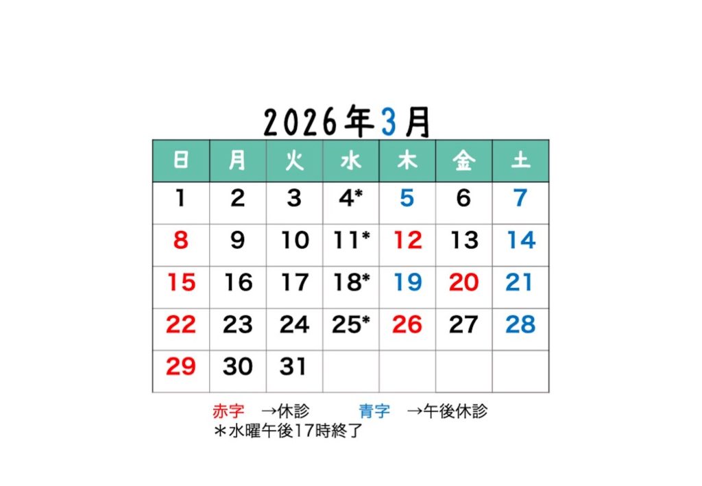 2026年1月より、以下の様に診療時間と休診日を変更いたします。
